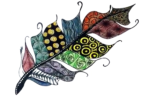 Wir füllten die Segmente der Feder mit Mustern und malten diese mit Heilsteinfarbe aus.